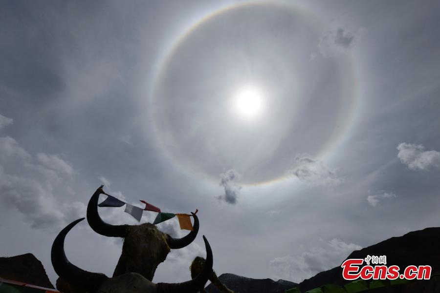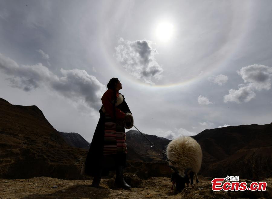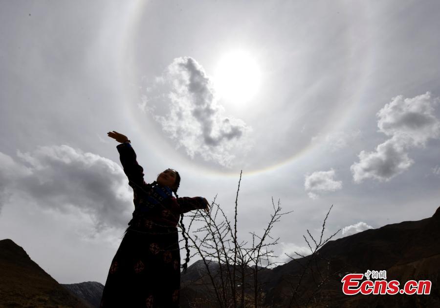 A solar halo appears in the sky in Lhasa, southwest China's Tibet Autonomous Region, March 20, 2023. (Photo: China News Service/Li Lin)