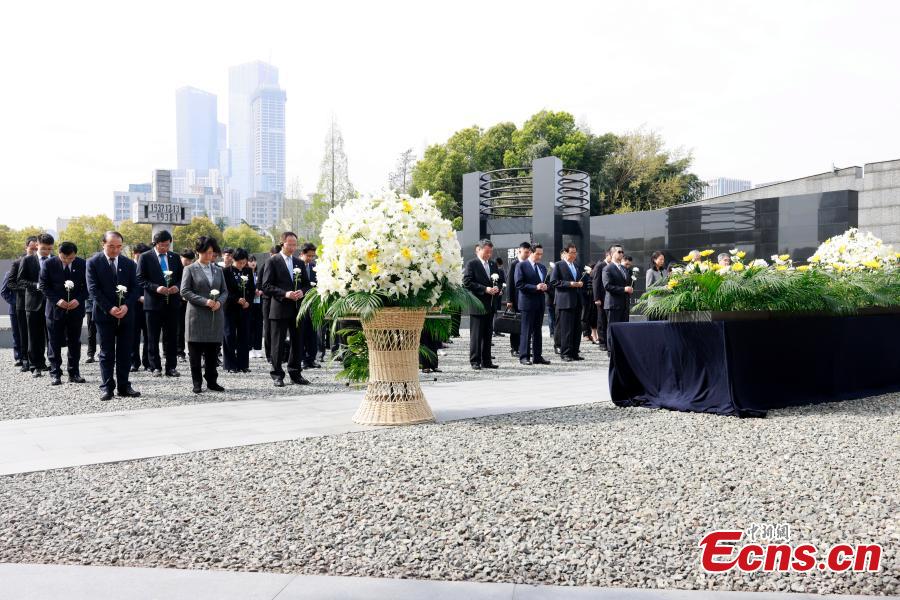 Ma Ying-jeou, former chairman of the Chinese Kuomintang party, visits the Memorial Hall of the Victims in Nanjing Massacre by Japanese Invaders and expresses deep condolence for the compatriots who lost their lives in the massacre in Nanjing, east China's Jiangsu Province, March 29, 2023. (Photo: China News Service/Lu Mei)