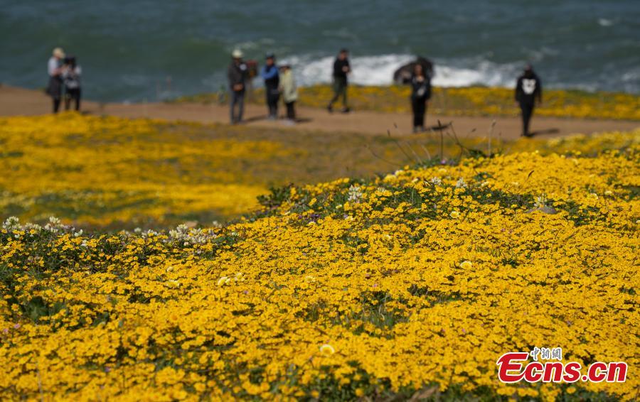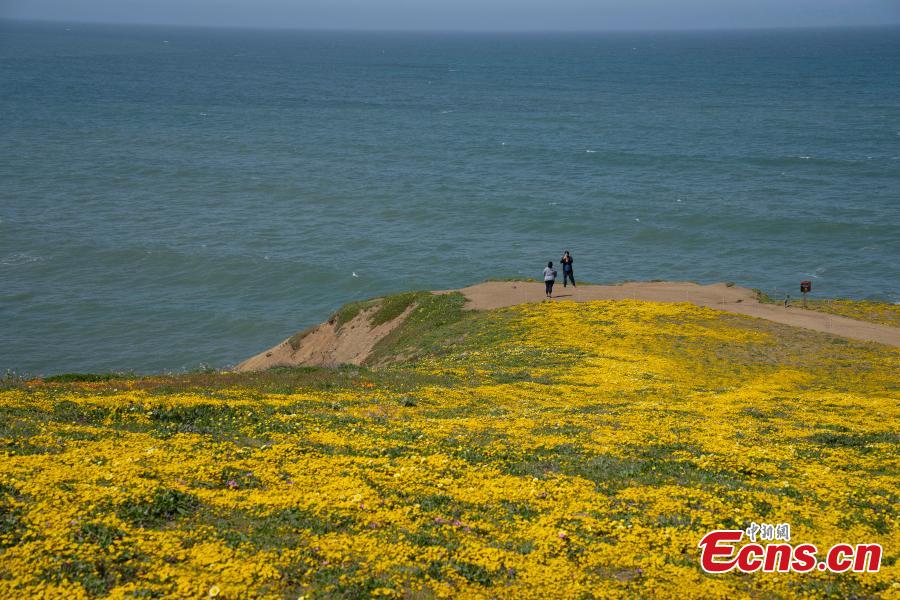 Wild flowers are in full bloom along the coast of Pacifica in San Francisco Bay Area, California, U.S., April 24, 2023. (Photo: China News Service/Liu Guanguan)