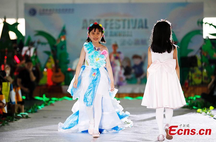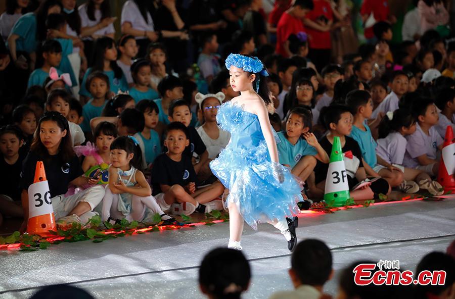 A creative fashion show that aims to raise environmental protection attracted the participation of many children from a primary school in Shanghai on Children's Day.