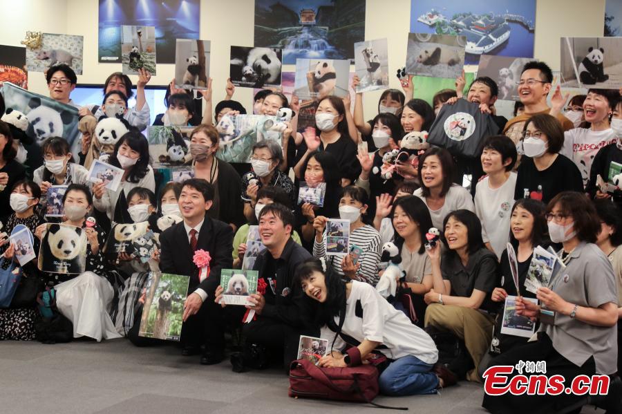 Fans enjoy photos of beloved giant panda Xiang Xiang during a birthday celebration party held in Tokyo, Japan, June 12, 2023. (Photo provided to China News Service)