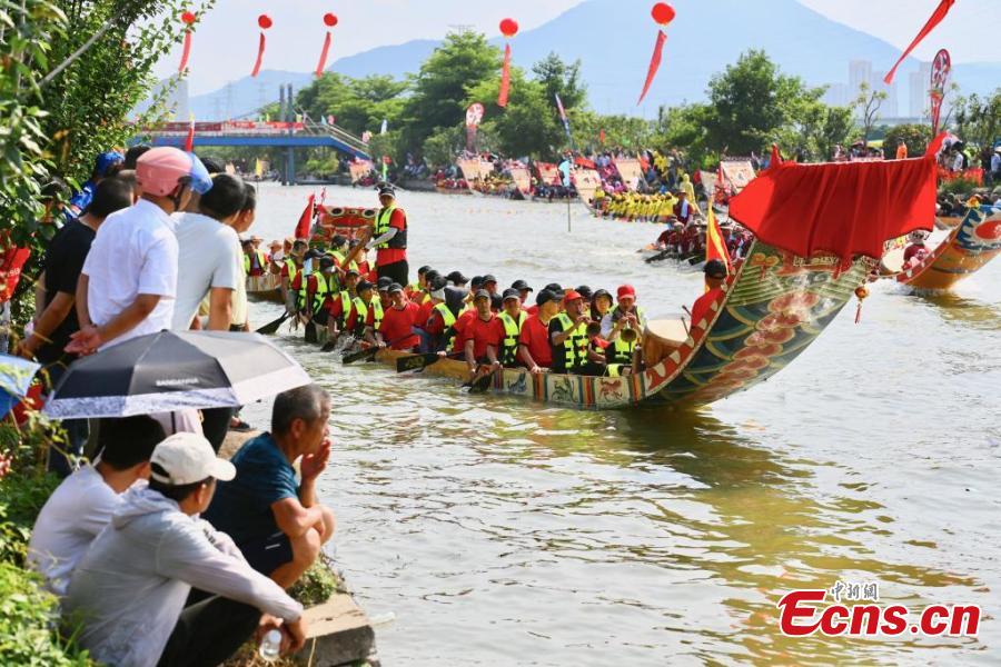 People take part in a dragon boat race in Putian, east China's Fujian Province, June 12, 2023. (Photo: China News Service/Wang Dongming)