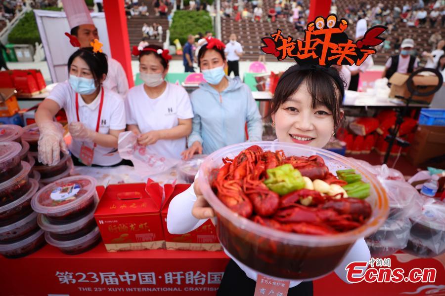 The 23rd International Crayfish Festival kicked off on Tuesday. Xuyi County, a major crayfish base, has a crayfish farming area of more than 60,000 hectares, yielding an output value of 20.2 billion yuan ($280,000) in 2022.