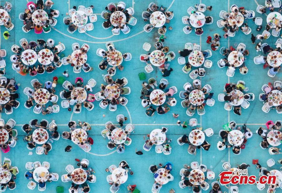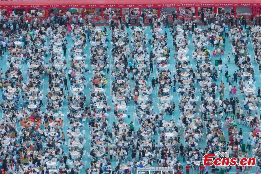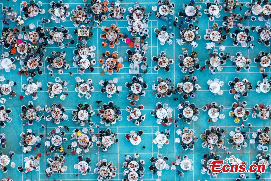 People enjoy crayfish during the 23rd International Crayfish Festival in Xuyi, east China's Jiangsu Province, June 13, 2023. (Photo: China News Service/Yang Bo)