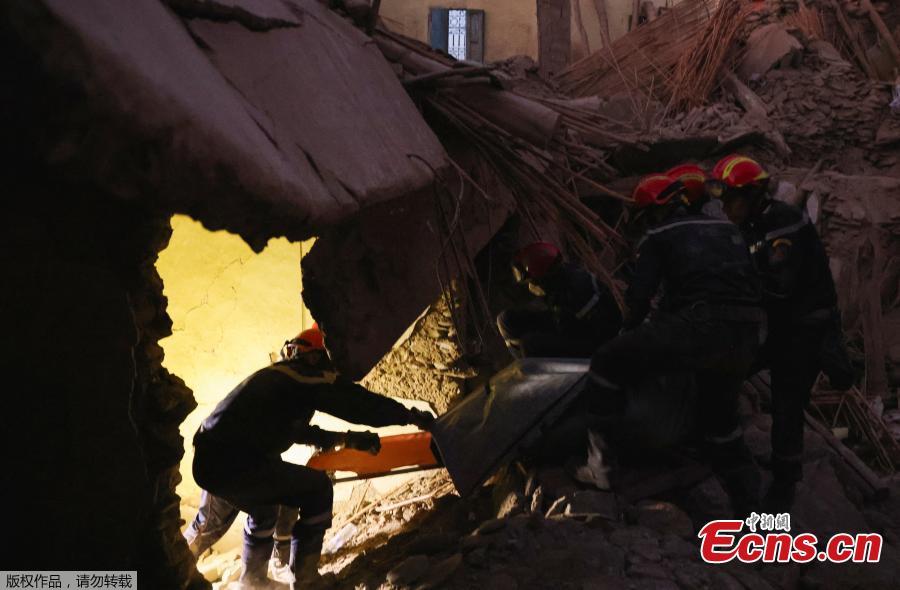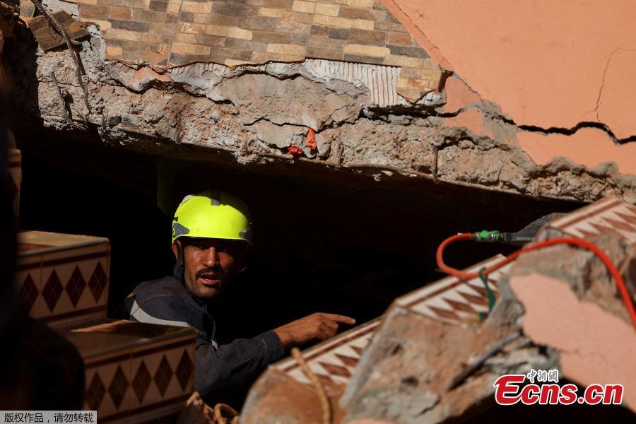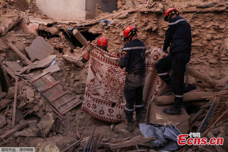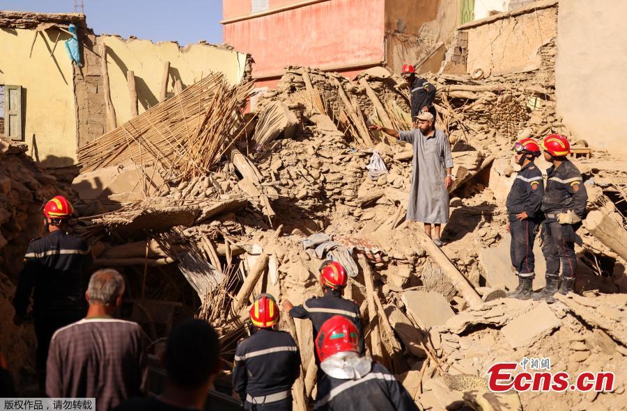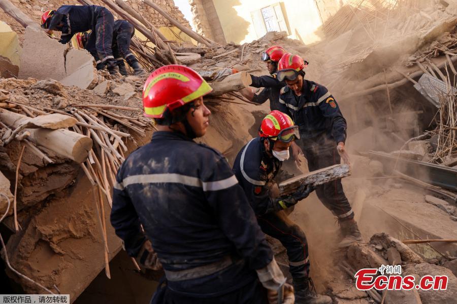 Emergency crews work in the aftermath of a deadly earthquake in Amizmiz, Morocco, Sept. 10, 2023. (Photo/Agencies)
