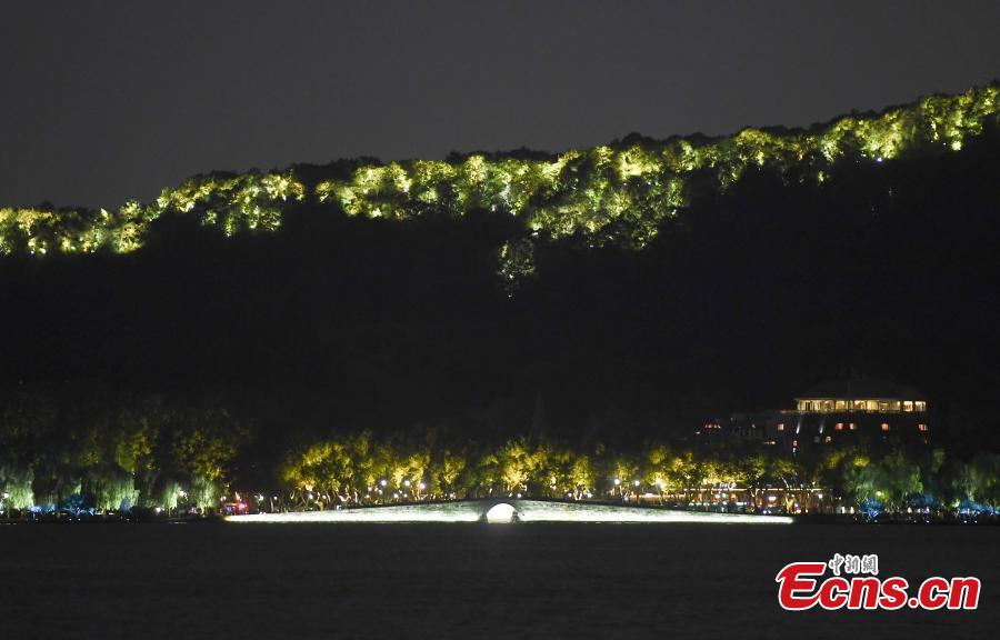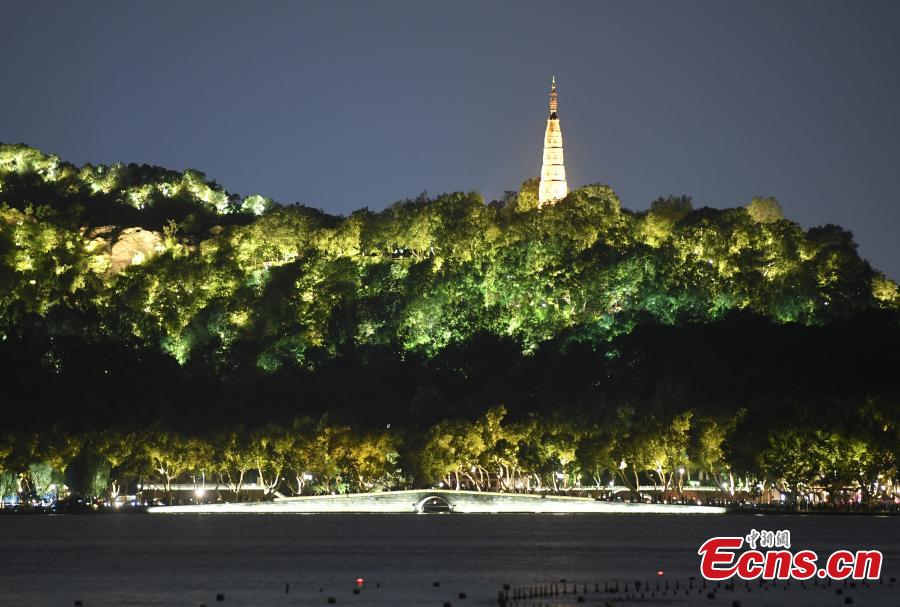 West Lake Scenic Area is illuminated by colorful lights in Hangzhou, east China's Zhejiang Province, Sept. 12, 2023. (Photo: China News Service/Wang Gang)