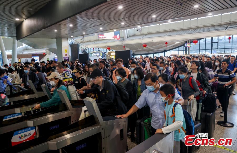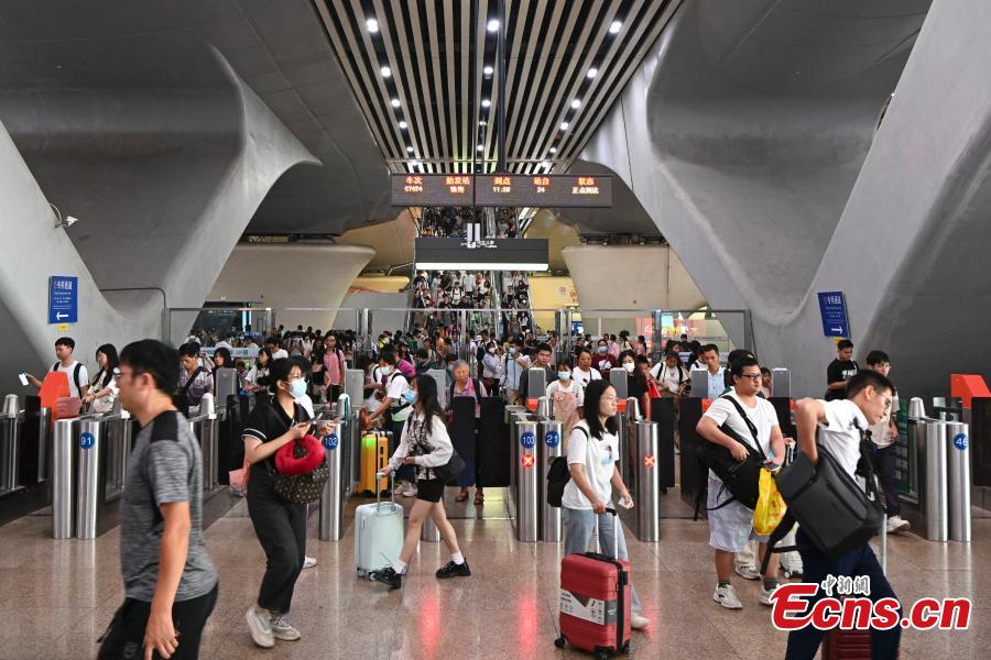 Travelers go through automated gateways at Guangzhou south railway station in south China's Guangdong Province, Oct. 6, 2023. (Photo: China News Service/Chen Jimin)
