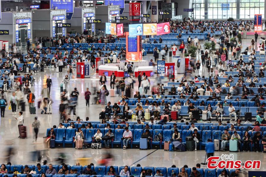 Travelers wait in the waiting hall of Guiyang north railway station in southwest China's Guizhou Province, Oct. 6, 2023. (Photo: China News Service/Qu Honglun)