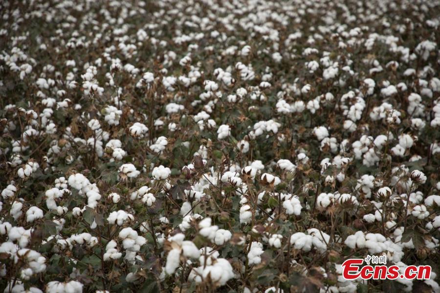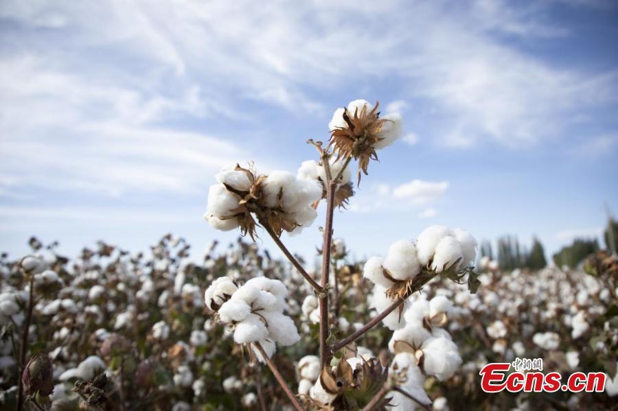 Cotton enters harvest season at a cotton field of Xinjiang Production and Construction Corps, northwest China's Xinjiang Uyghur Autonomous Region. (Photo: China News Service/Wang Wanjun)