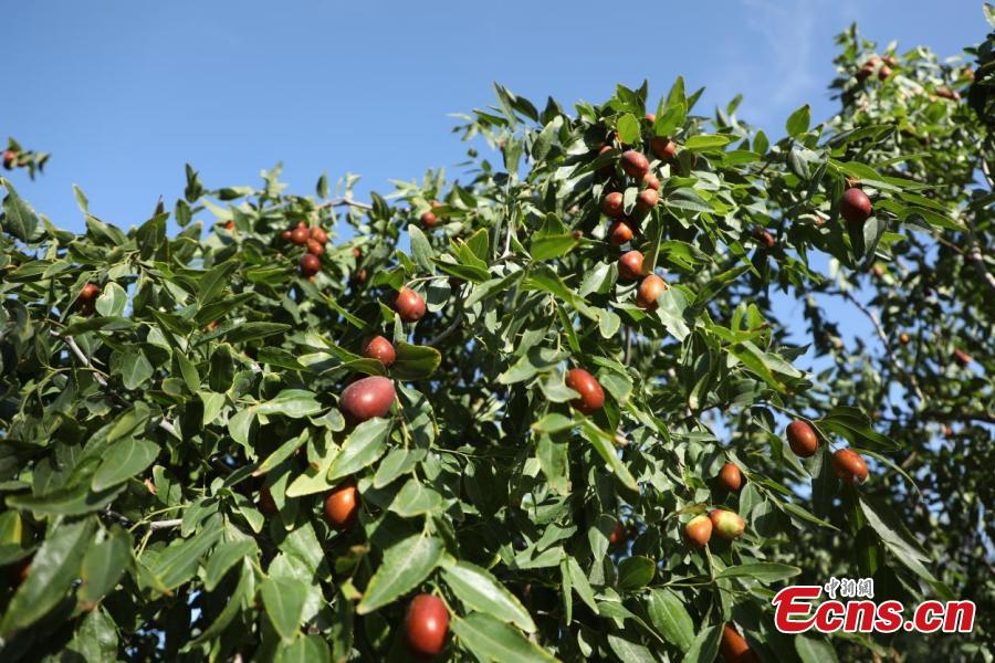 Red dates enter harvest season at Xinjiang Production and Construction Corps, northwest China's Xinjiang Uyghur Autonomous Region. (Photo: China News Service/Wang Wanjun)