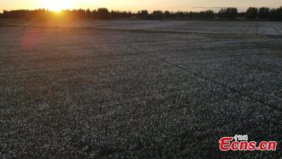 Sunset scenery of a cotton field at Xinjiang Production and Construction Corps, northwest China's Xinjiang Uyghur Autonomous Region. (Photo: China News Service/Wang Wanjun)