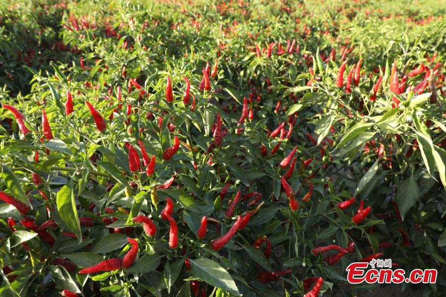 Red chili peppers enter harvest season at Xinjiang Production and Construction Corps, northwest China's Xinjiang Uyghur Autonomous Region. (Photo: China News Service/Wang Wanjun)