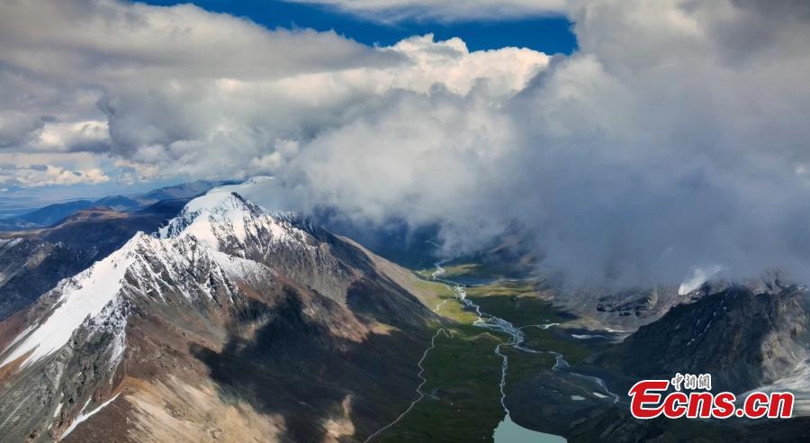 Magnificent view of snowy peaks of Tianshan Mountain in a sea of clouds in northwest China's Xinjiang Uyghur Autonomous Region. (Photo: China News Service/Zhong Dawei)