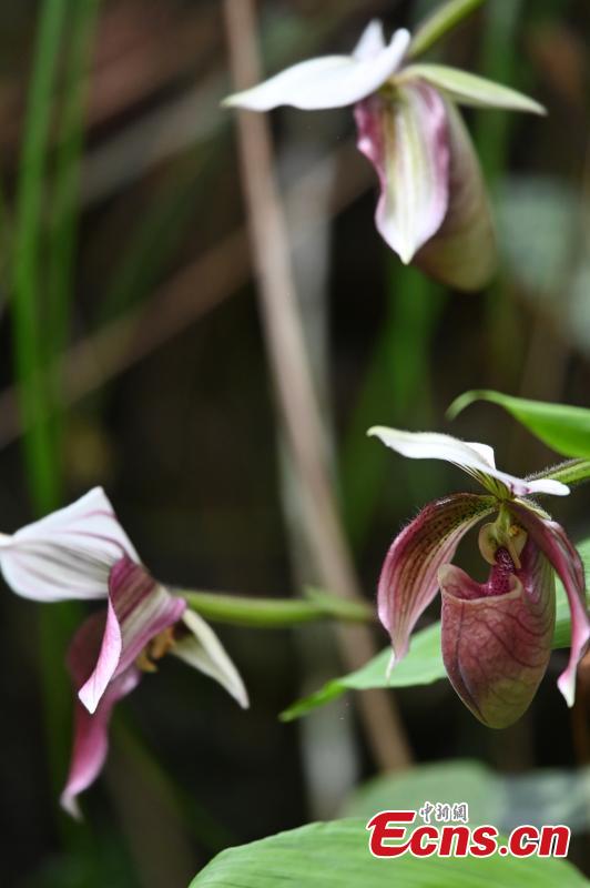 Paphiopedilum purpureum, a rare wild orchid blooms at Baixi provincial nature reserve in Zijin County, Heyuan city, south China's Guangdong Province, Oct. 12, 2023. (Photo: China News Service/Chen Chuhong)