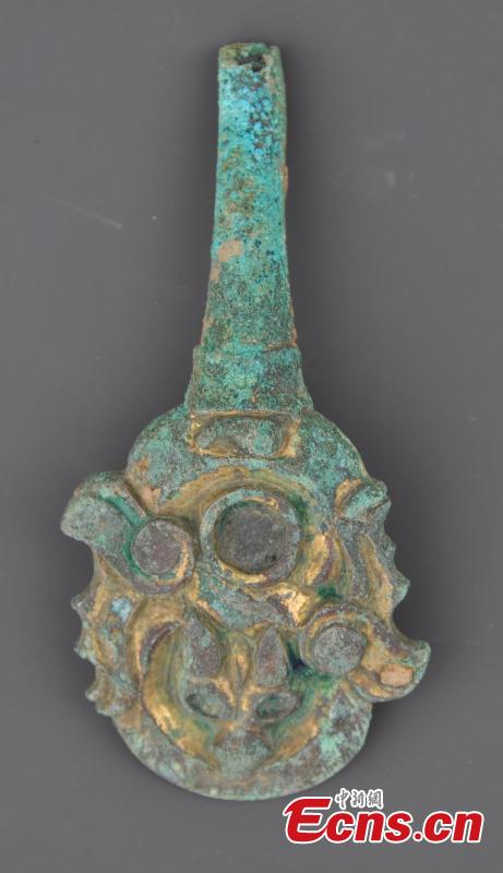 A cultural relic is excavated from civilian cemeteries in Xianyang city, northwest China's Shaanxi Province. (Photo provided to China News Service)
