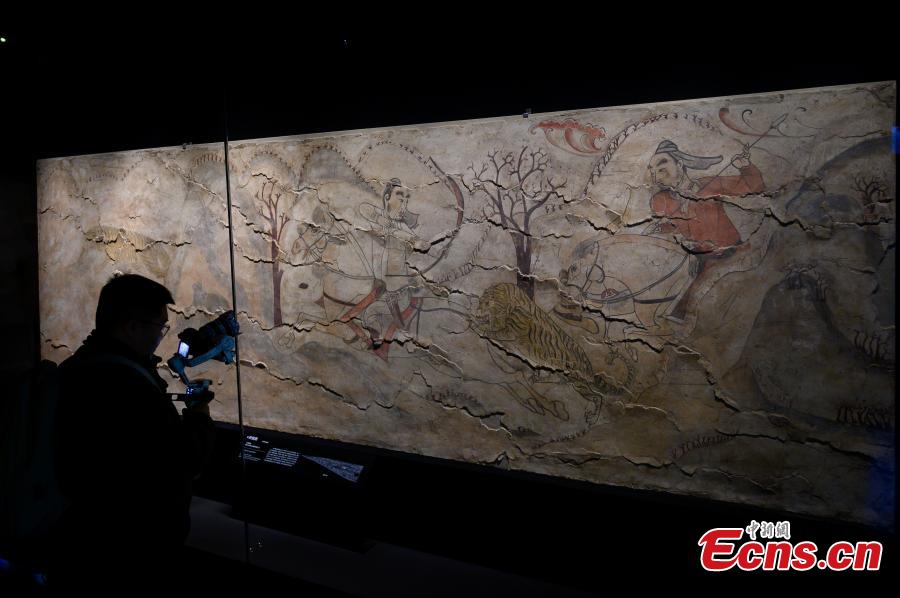 A mural painting is displayed at Northern Qi Dynasty Mural Museum in Taiyuan, north China's Shanxi Province, Nov. 14, 2023. (Photo: China News Service/Wei Liang)