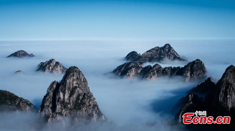A beautiful sea of clouds occurs after a rainfall over Mount Huangshan after a rainfall in east China's Anhui Province. (Photo: China News Service/Li Qin)