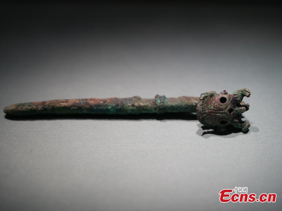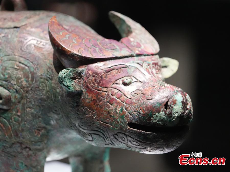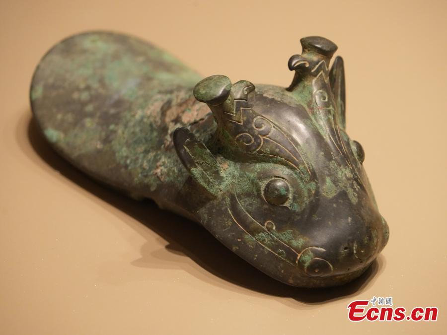An artifact featuring an animal is displayed at the new Yinsu Museum in Anyang, central China's Henan Province, Feb. 25, 2024. (Photo: China News Service/Kan Li)