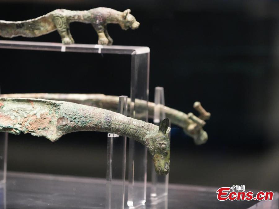 Cultural relics featuring animals are displayed at the new Yinsu Museum in Anyang, central China's Henan Province, Feb. 25, 2024.
