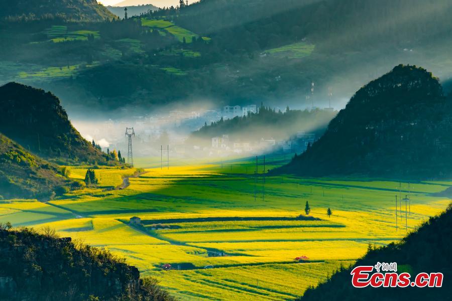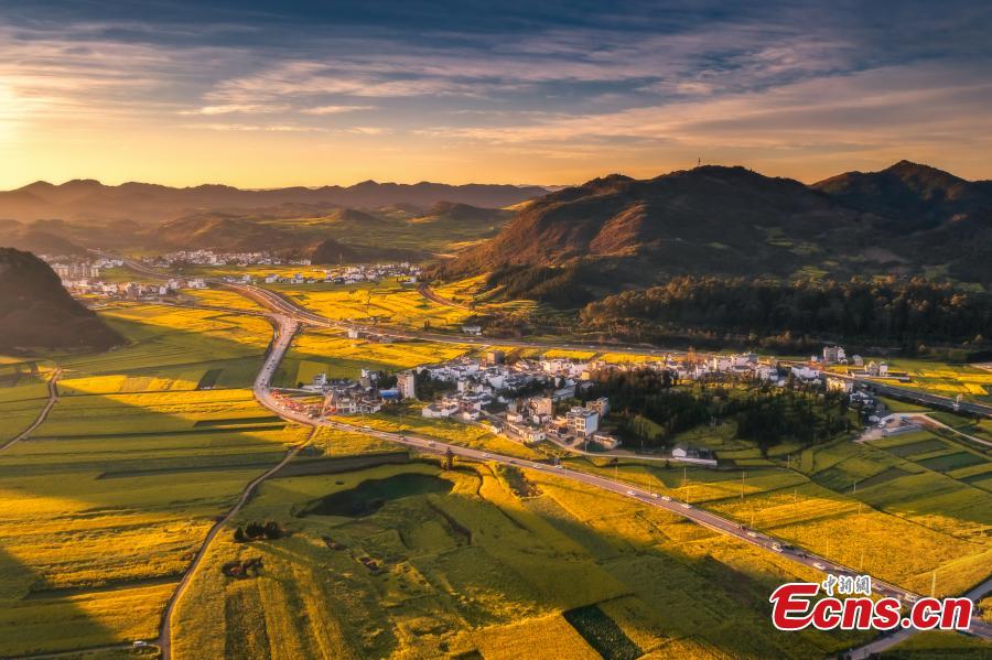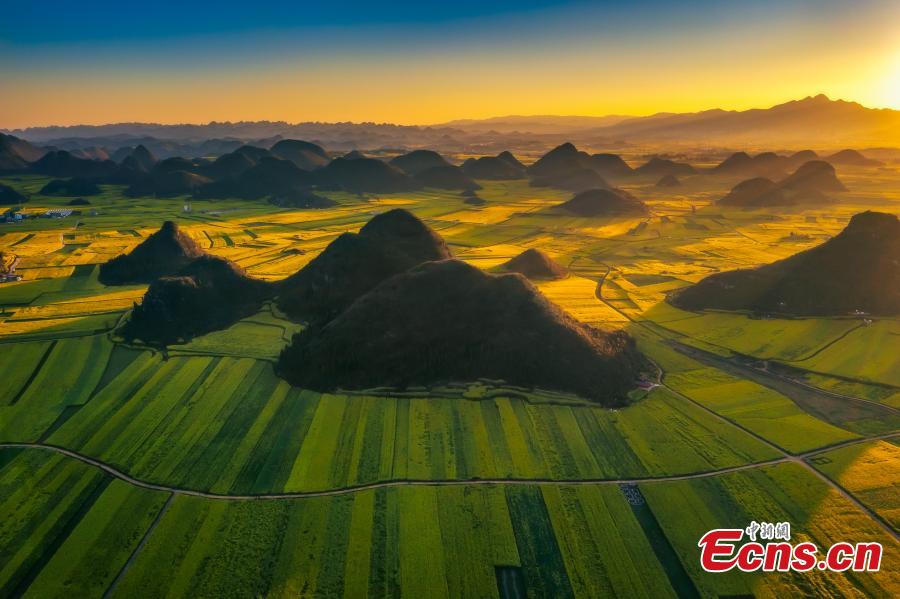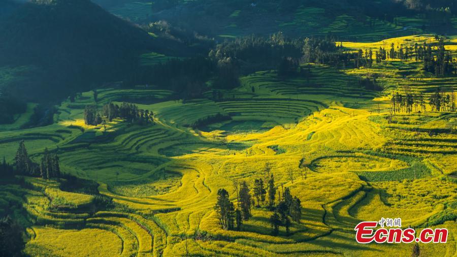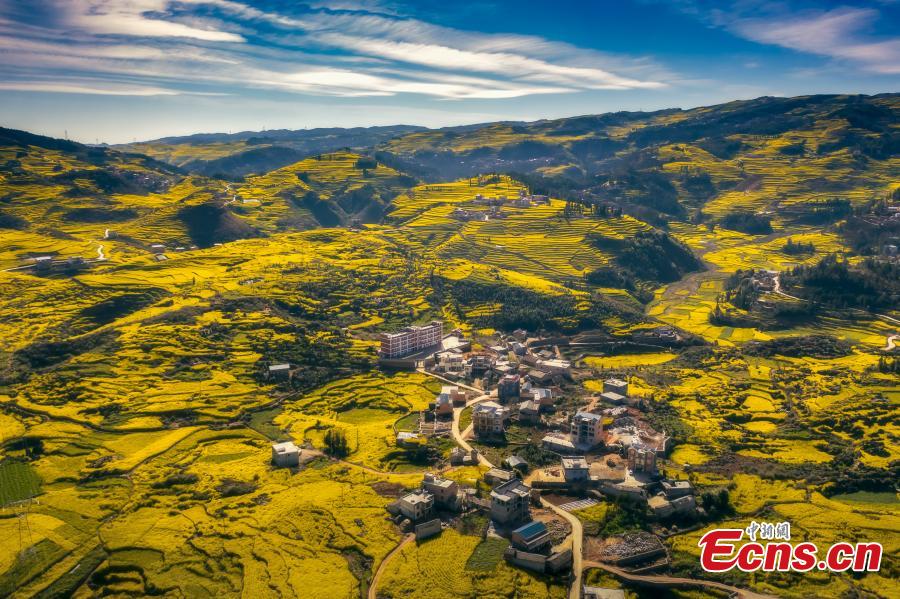 Golden farmland scene with blooming cole flowers in Luoping County of Qujing City, southwest China's Yunnan Province. (Photo/ICphoto)
