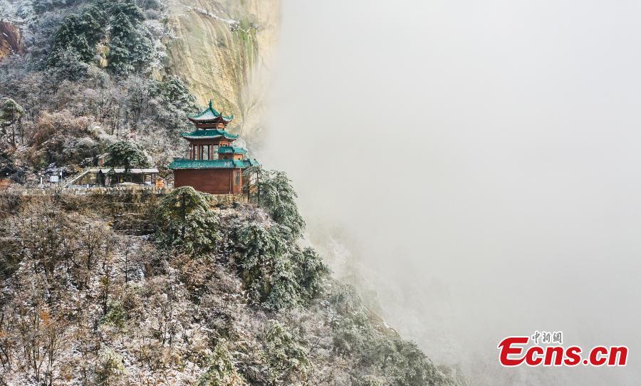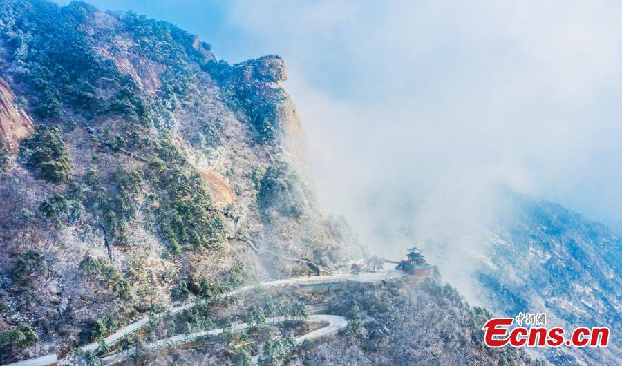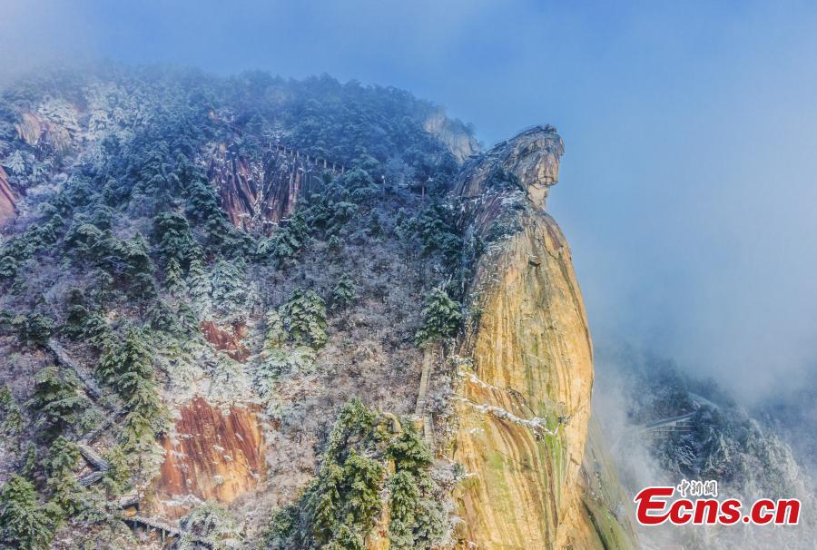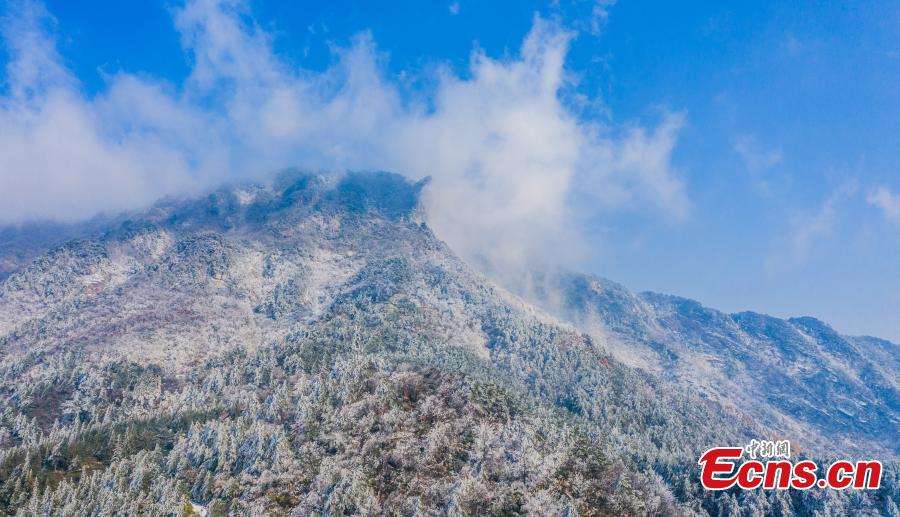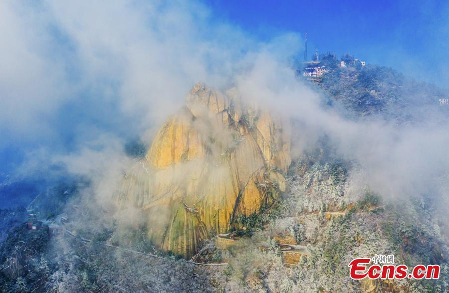 A sea of clouds float on rime-covered mountain peaks at the Guifeng scenic area in Macheng, central China's Hubei Province, Feb. 25, 2024. (Photo: China News Service/Long Yu)