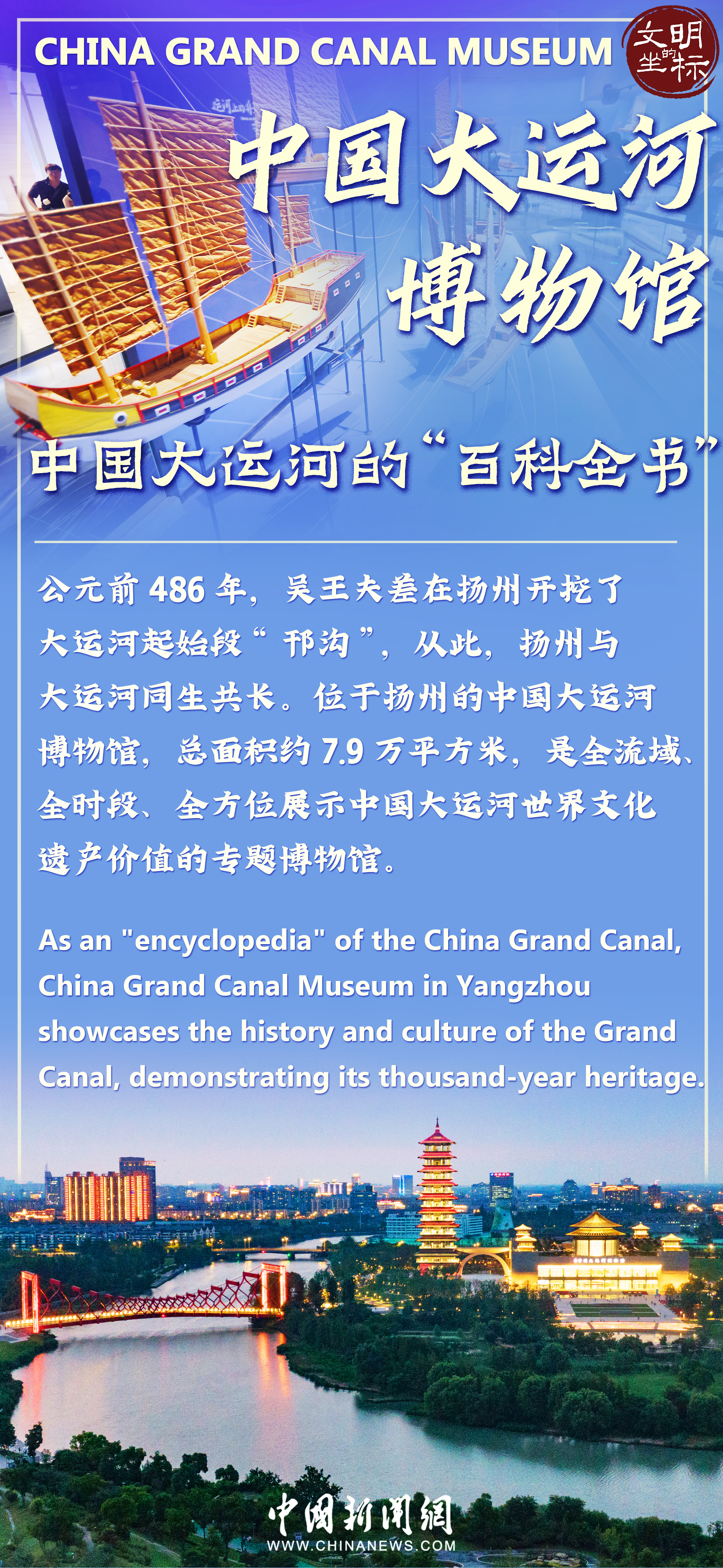 As an "encyclopedia" of the China Grand Canal, China Grand Canal Museum in Yangzhou showcases the history and culture of the Grand Canal, demonstrating its thousand-year heritage.