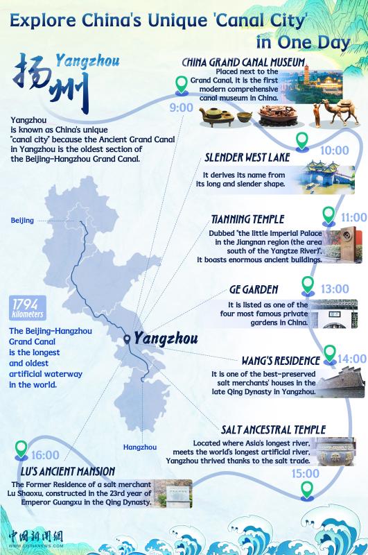 Yangzhou is known as China's unique "canal city" because the Ancient Grand Canal in Yangzhou is the oldest section of the Beijing-Hangzhou Grand Canal.