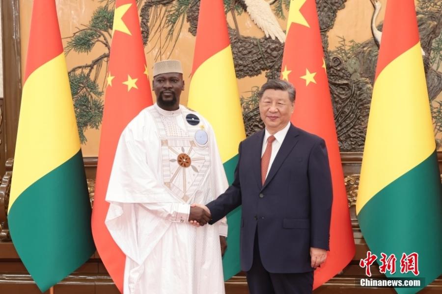 Chinese President Xi Jinping meets with Guinean President Mamady Doumbouya, who is in Beijing for the 2024 Summit of the Forum on China-Africa Cooperation (FOCAC), at the Great Hall of the People in Beijing, capital of China, Sept. 2, 2024. (Photo: China News Service / Sheng Jiapeng)