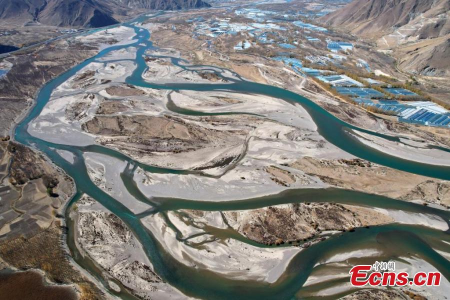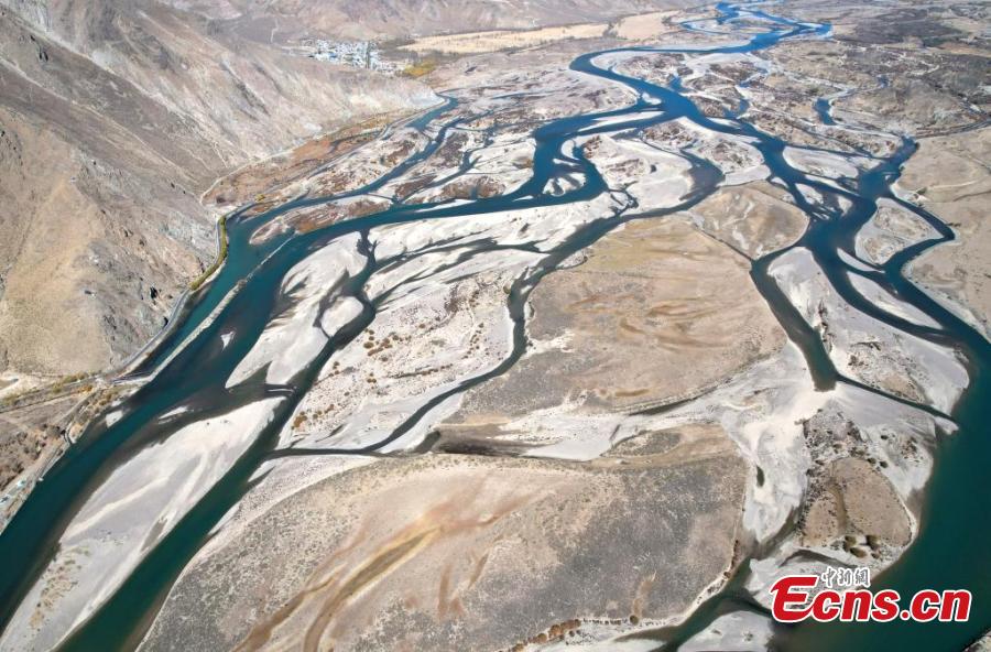 Magnificent landscape of long stretches of the Lhasa River branches in southwest China's Xizang Autonomous Region, Nov. 3, 2024. (Photo: China News Service/Li Lin)
