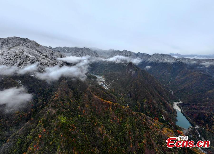 Aerial view of snow-covered Cuihua Mountain of the Qinling Mountains in Xi'an, northwest China's Shaanxi Province. (Photo provided to China News Service)