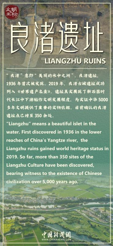 "Liangzhu" means a beautiful islet in the water. First discovered in 1936 in the lower reaches of China's Yangtze river, the Liangzhu ruins gained world heritage status in 2019. So far, more than 350 sites of the Liangzhu Culture have been discovered, bearing witness to the existence of Chinese civilization over 5,000 years ago.