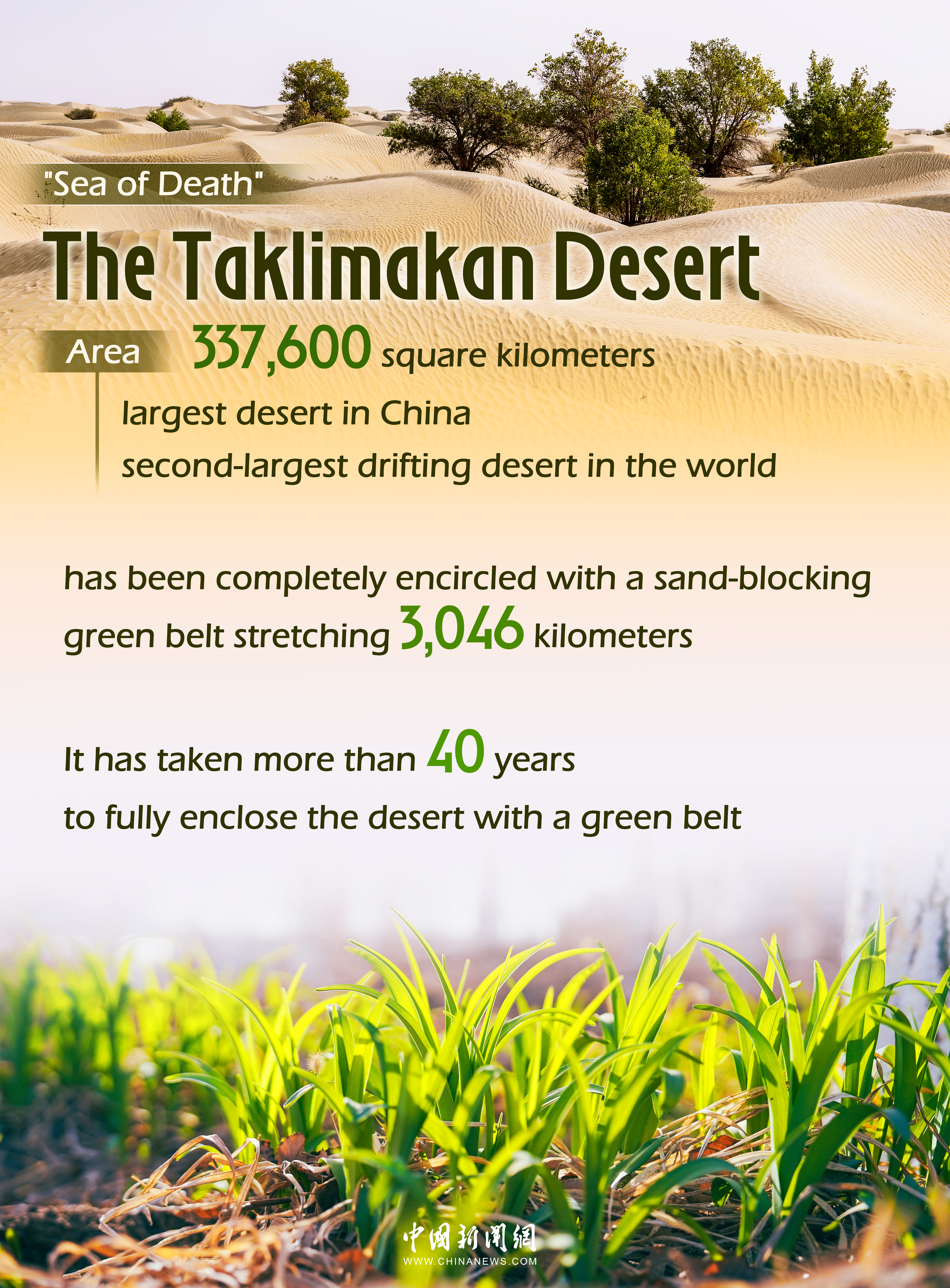 China's largest desert encircled by 40-year green barrier project