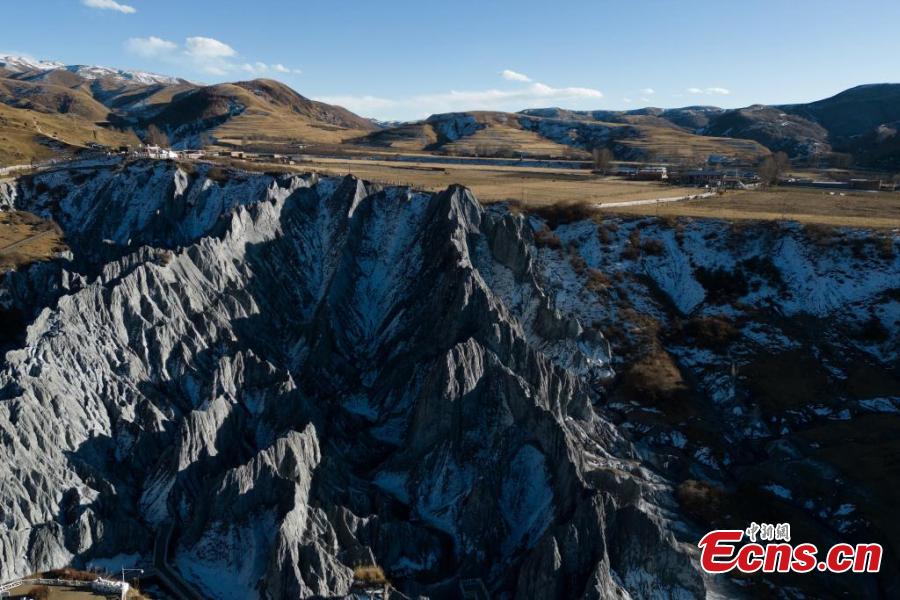 Aerial view of a rock forest in Moshi Park, Ganzi Tibetan Autonomous Prefecture, southwest China's Sichuan Province, Dec. 3, 2024. (Photo: China News Service/Zhang Lang)