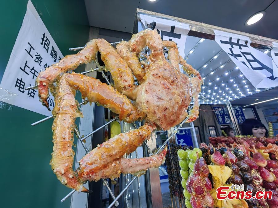 Tanghulu, a popular street snack traditionally made of candied hawthorns on a stick, is replaced by creative treats such as eggplants, cucumbers, chili peppers and even sausages Lobster and hairy crab in Harbin, attracting many visitors.