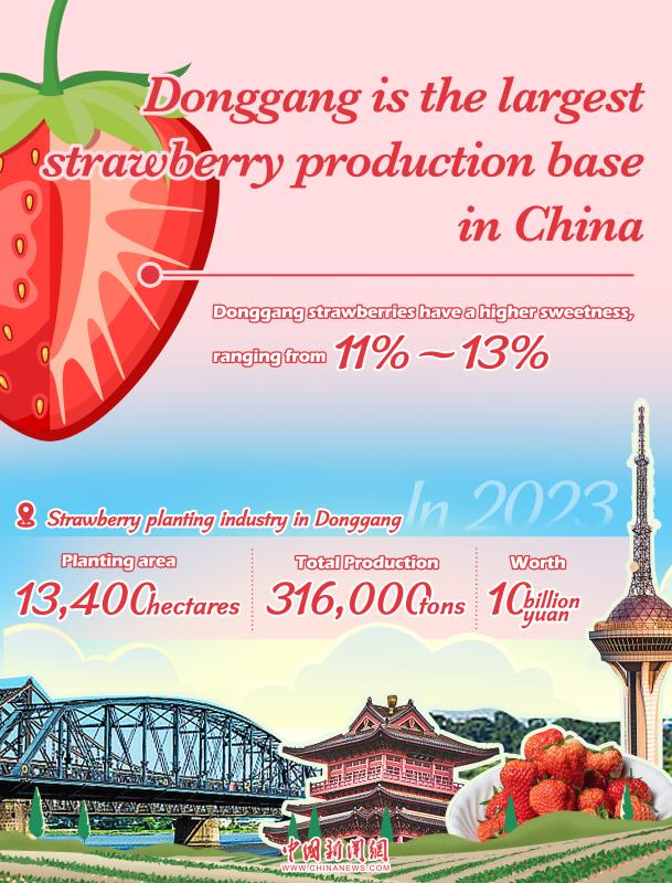 In 2023, the city had a strawberry planting area of around 13,400 hectares, with a total production of 316,000 tons, worthing nearly 10 billion yuan.