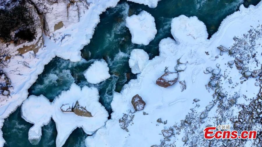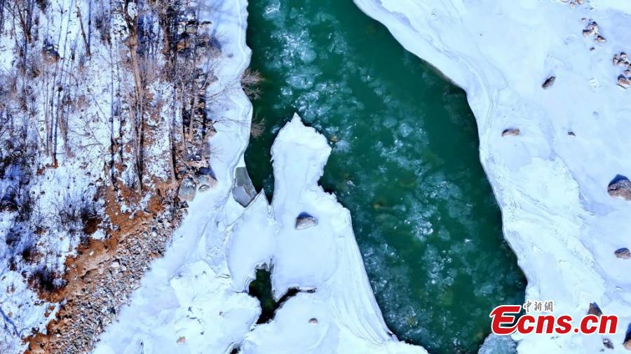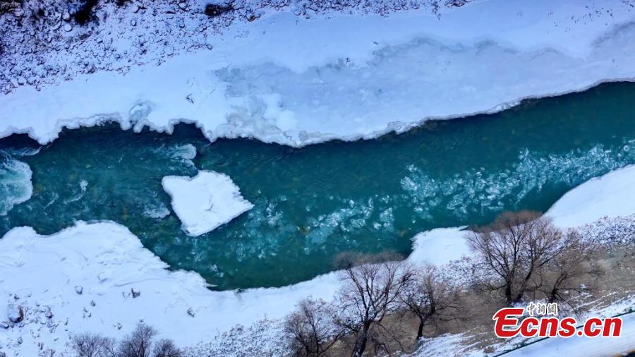 Crystal ice floats in the upper stream of Heihe River in Qilian County, Haibei Tibetan autonomous prefecture, northwest China's Qinghai Province. (Photo: China News Service/Zhang Hongke)