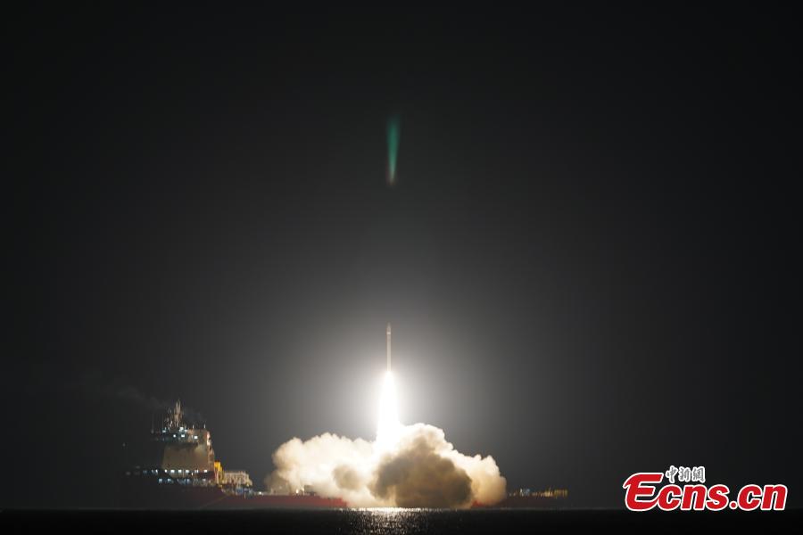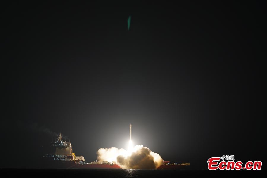 A CERES-1 Y4 carrier rocket carrying the Tianqi 33-36 satellites blasts off from the waters near east China's Shandong Province, Dec. 19, 2024. (Photo: China News Service/Guo Jinqi)