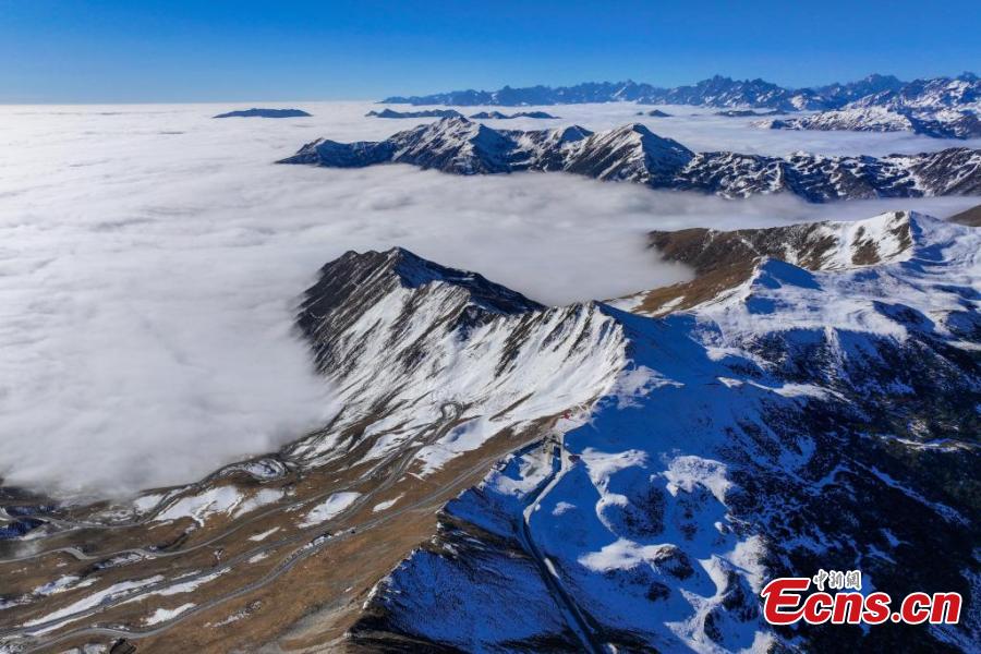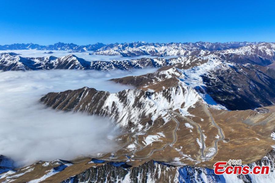 Cloud-shrouded Jiajin Mountain is dressed in silver by snow in Xiaojin County, Aba Tibetan and Qiang Autonomous Prefecture, southwest China's Sichuan Province, Dec. 25, 2024. (Photo: China News Service/Liu Zhongjun)