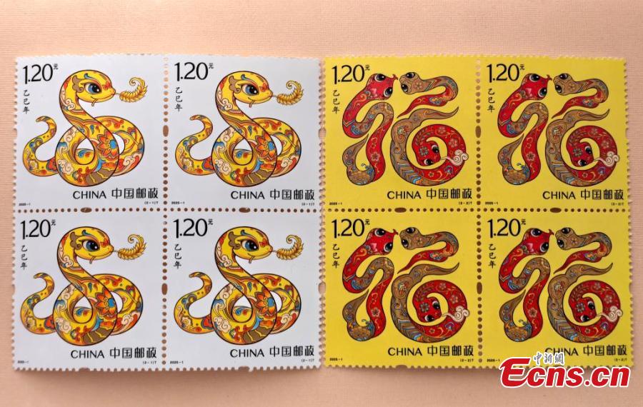 China Post on Sunday unveiled a set of two special stamps to celebrate the upcoming Chinese zodiac Year of the Snake. Inspired by Dunhuang murals and traditional customs, the stamps, integrating the image of the snake with auspicious meanings, will be released for sale on January 5, 2025.