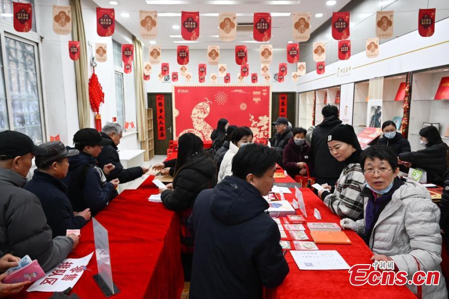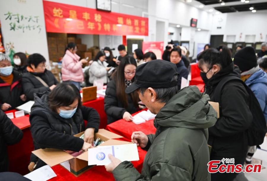 Stamp collectors wait to buy the special stamps marking the Chinese zodiac Year of the Snake at a post office in Hangzhou, east China's Zhejiang Province, Jan. 5, 2024. (Photo: China News Service/Wang Gang)