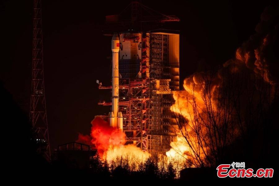 A Long March-3B rocket carrying a test satellite, Shijian-25, blasts off from the Xichang Satellite Launch Center in southwest China's Sichuan Province, Jan. 7, 2025. (Photo: China News Service/Du Xinxin)