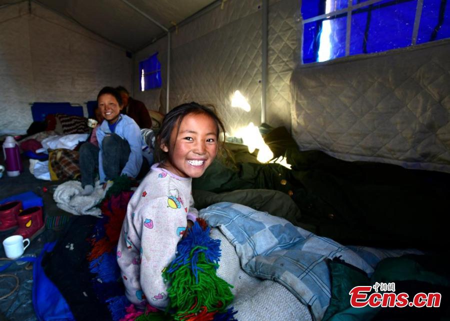Earthquake-affected residents stay in a tent in Dingri County, Xigaze, southwest China's Xizang Autonomous Region, Jan. 8, 2025. (Photo: China News Service/Li Lin)