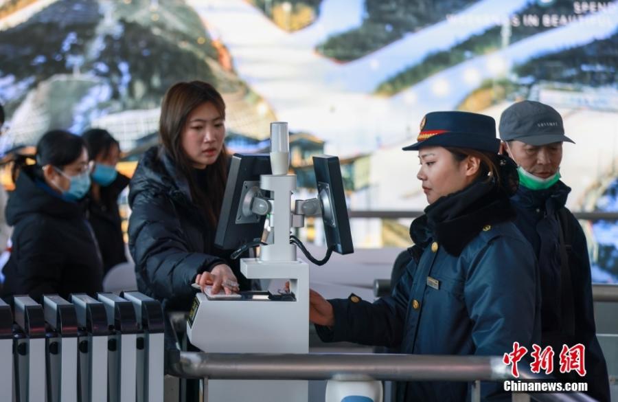 Passengers pass through the self check-in gates at Beijing North Railway Station, Jan. 13, 2025. (Photo: China News Service/Jia Tianyong)