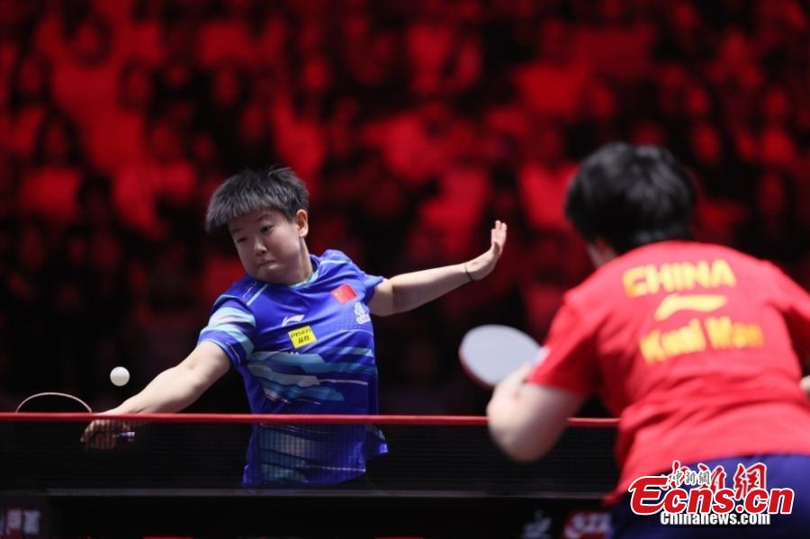 Sun Yingsha hits a return during the women's singles final between Sun Yingsha of China and Kuai Man of China at the World Table Tennis (WTT) Singapore Smash 2025, Singapore, Feb. 9, 2025. (Photo/VCG)