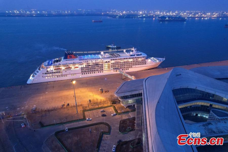 The cruise ship "Europa 2" berths at Tianjin International Cruise Home Port, Feb. 25, 2025. (Photo: China News Service/Tong Yu)