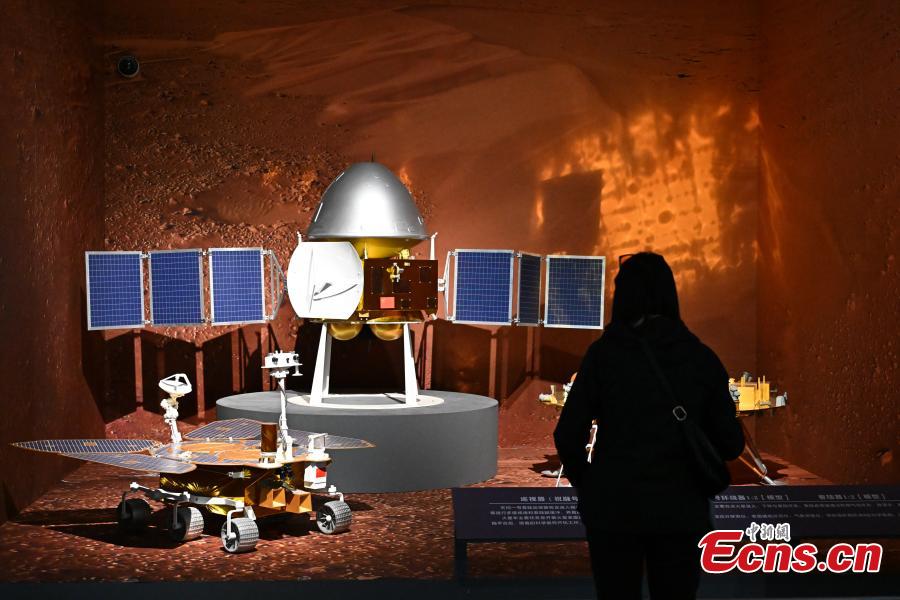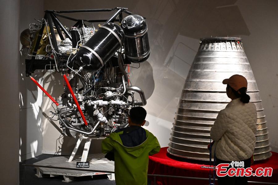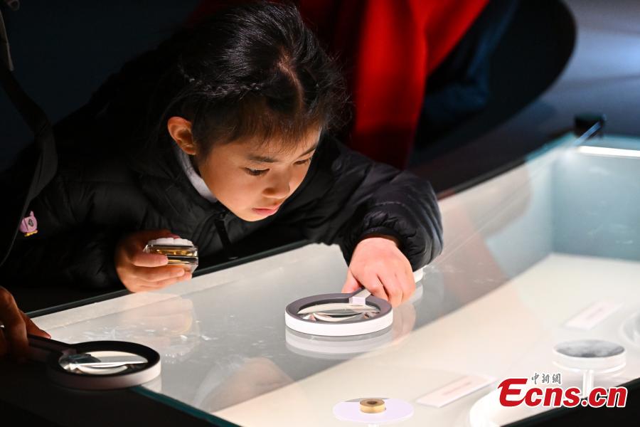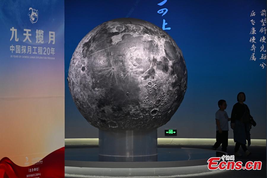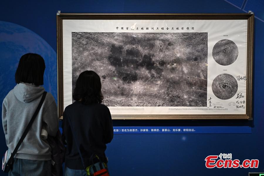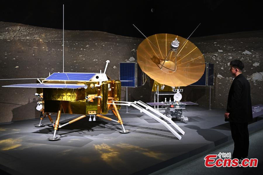 Visitors view the exhibits highlighting achievements on China's 20 years of its lunar exploration at the National Museum of China, Beijing, April 1, 2025. (Photo: China News Service/Tian Yuhao)