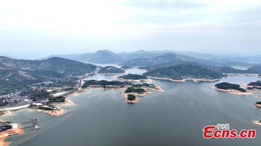 Aerial view of the Cuiping Lake, the largest artificial lake in east China's Fujian Province, April 8, 2025. (Photo: China News Service/Zhang Bin)
