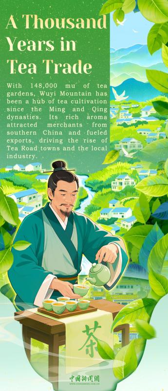 As a key origin of Chinese tea culture, Wuyi Mountain has produced Beiyuan tribute tea since the Song Dynasty (960-1279), with Zhu Xi lecturing here. In 2006, the technique of making Wuyi rock tea (Dahongpao) was recognized as a national intangible cultural heritage. Today, the fragrance of Wuyi tea has spread globally, reaching over a hundred countries. Explore the cultural roots behind its journey.