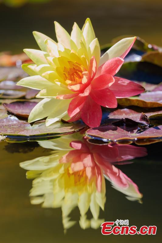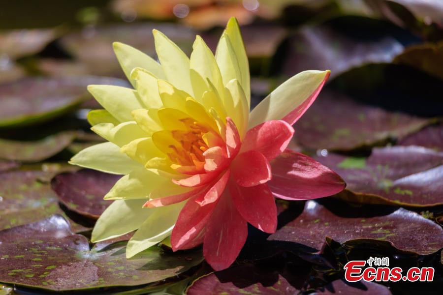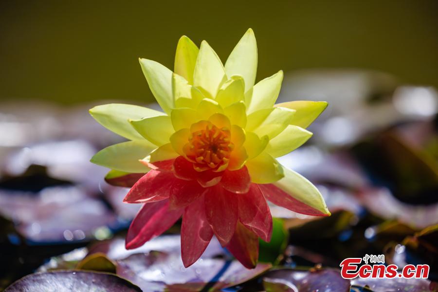 A water lily with two colors blooms at Daguan Park in Kunming, southwest China's Yunnan Province, May 7, 2025. (Photo/VCG)