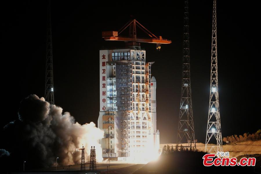 A modified version of the Long March-6 rocket carrying the Yaogan-40 02 satellite group blasts off from the Taiyuan Satellite Launch Center in north China's Shanxi Province, May 11, 2025. (Photo provided to China News Service)